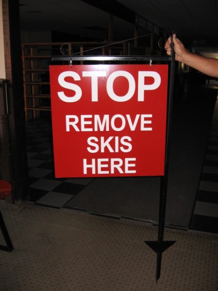 This type of sign is great because when the snow builds up, just pop it out and relocate on top of ice or snow! No need to have your message covered up!
